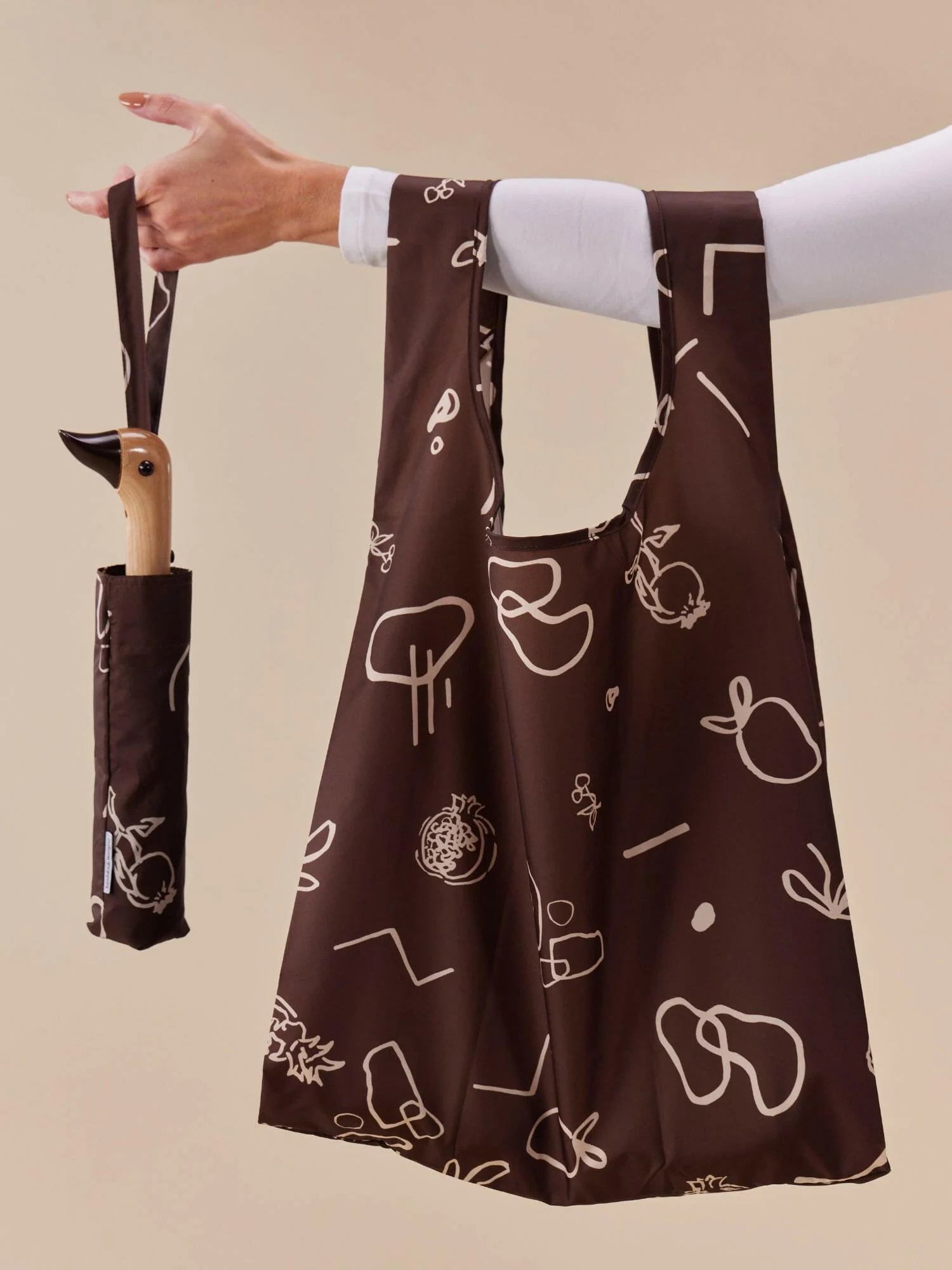 Meet The Extra Bag, originally handmade from the surplus material from our umbrella canopies. Following popular demand, we now recycle 6 plastic bottles to create each one of our reusable bags.